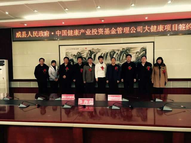 2016年1月22日,河北省威县人民政府与华体官方网页版-华体(中国)大健康项目签约仪式在河北省威县举行。威县人民政府县长商黎英、副县长孟祥义、副县长潘延彬,华体官方网页版-华体(中国)副总裁韩子宇、美好乡村农业科技发展有限公司总裁郭洪卫等出席签约仪式。 威县招商局局长刘汝恒主持仪式。韩子宇总裁首先对华体官方网页版-华体(中国)相关情况和前期准备工作做了详细介绍,商黎英县长对华体官方网页版-华体(中国)长期以来关注和支持威县发展表示感谢,并介绍了威县的经济环境、政策环境以及大健康事业发展情况。随后,双方就在威县人民政府关于推进健康服务事业发展的战略部署和总体规划下,分阶段开展大健康项目合作等问题进行了深入探讨并达成协议。双方同意,将发挥各自优势,共同推动医疗卫生、养老服务、健康管理、体育休闲、绿色农业、环保清洁等大健康领域的建设和合作,华体官方网页版-华体(中国)将发挥自身投融资平台优势,对威县健康产业分期投资总额将达到10亿元人民币。